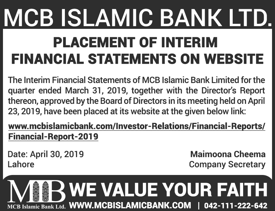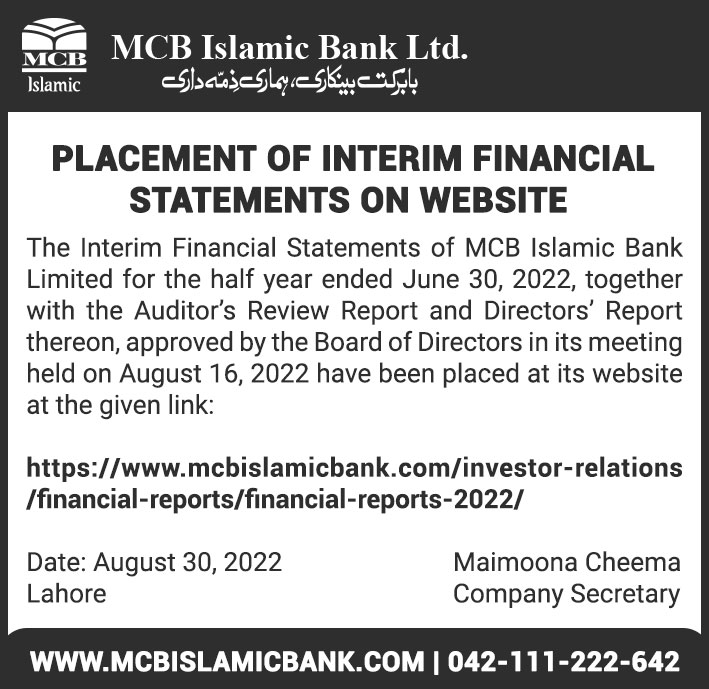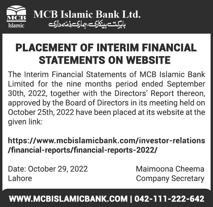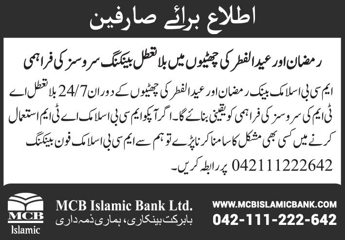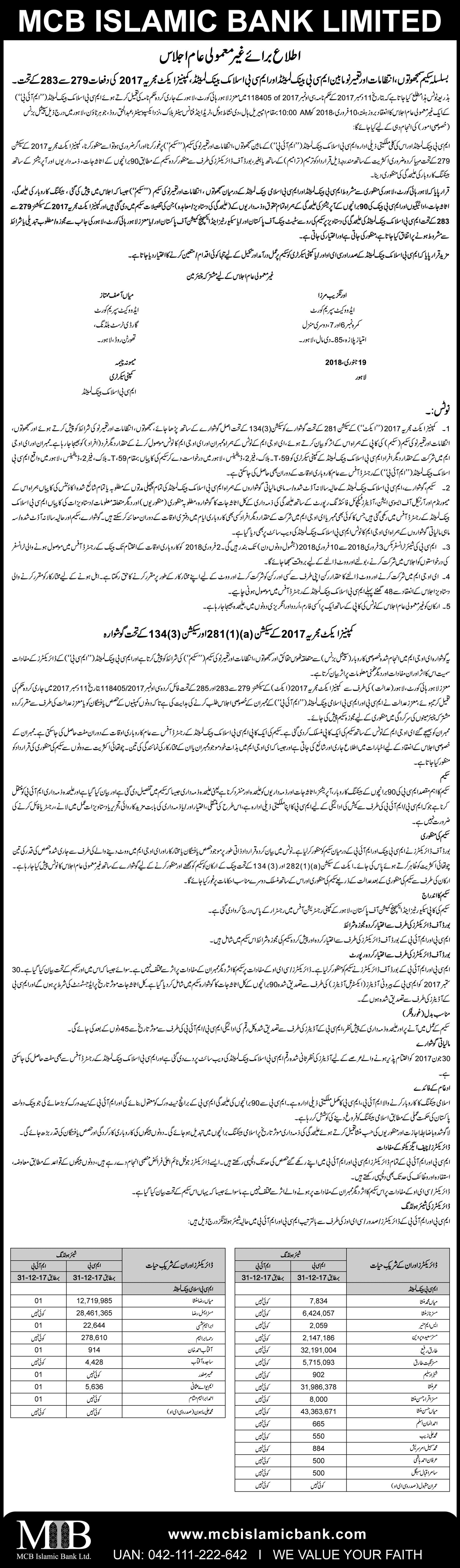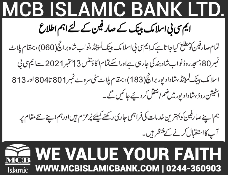 Closure of MCB Islamic Bank Shahdadpur and Halanaka, Hyderabad Branches