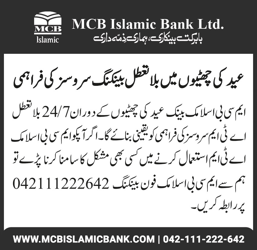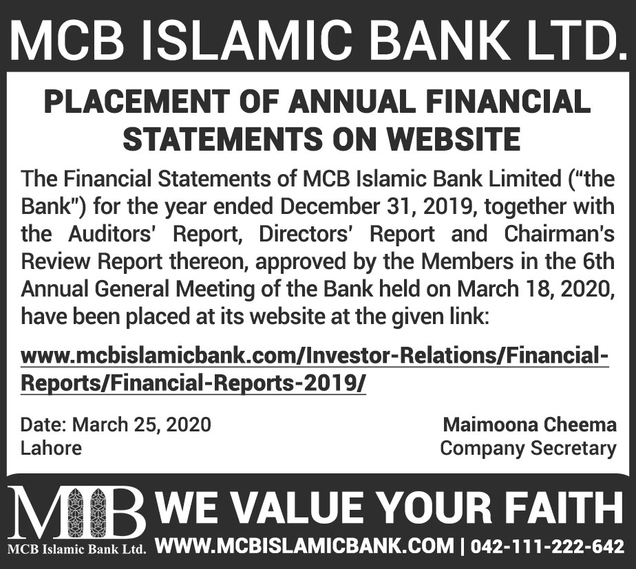 MCB Islamic Bank Continuity of Financial Services amidst COVID 19