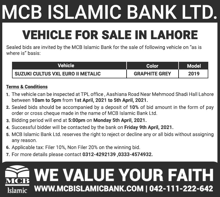 Auction Ad – Vehicle for Sale in Lahore (Apr 1, 2021)